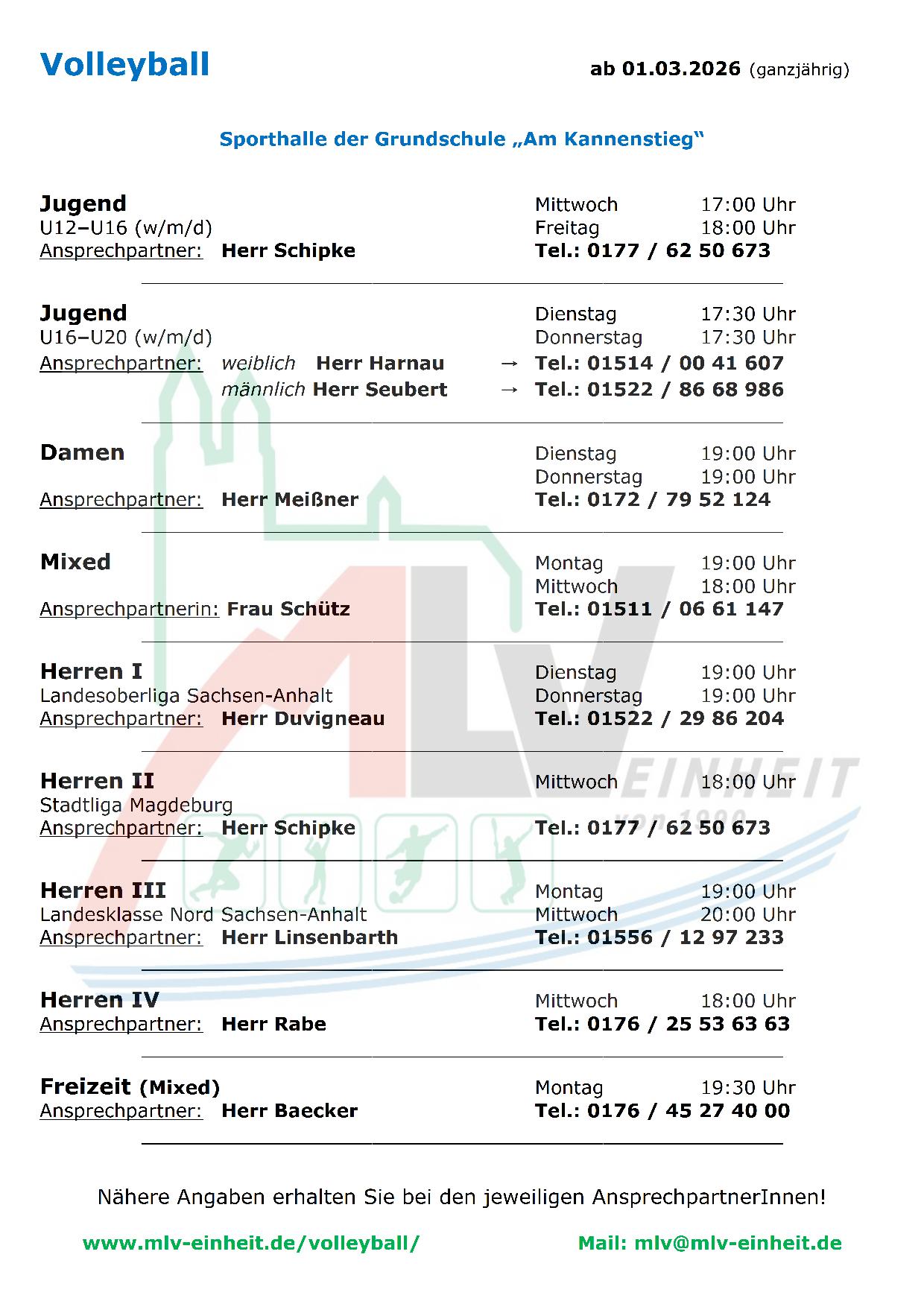 Die Trainingszeiten der einzelnen Teams erfahrt ihr beim runter scrollen und unter der Rubrik: Schnupperkurse